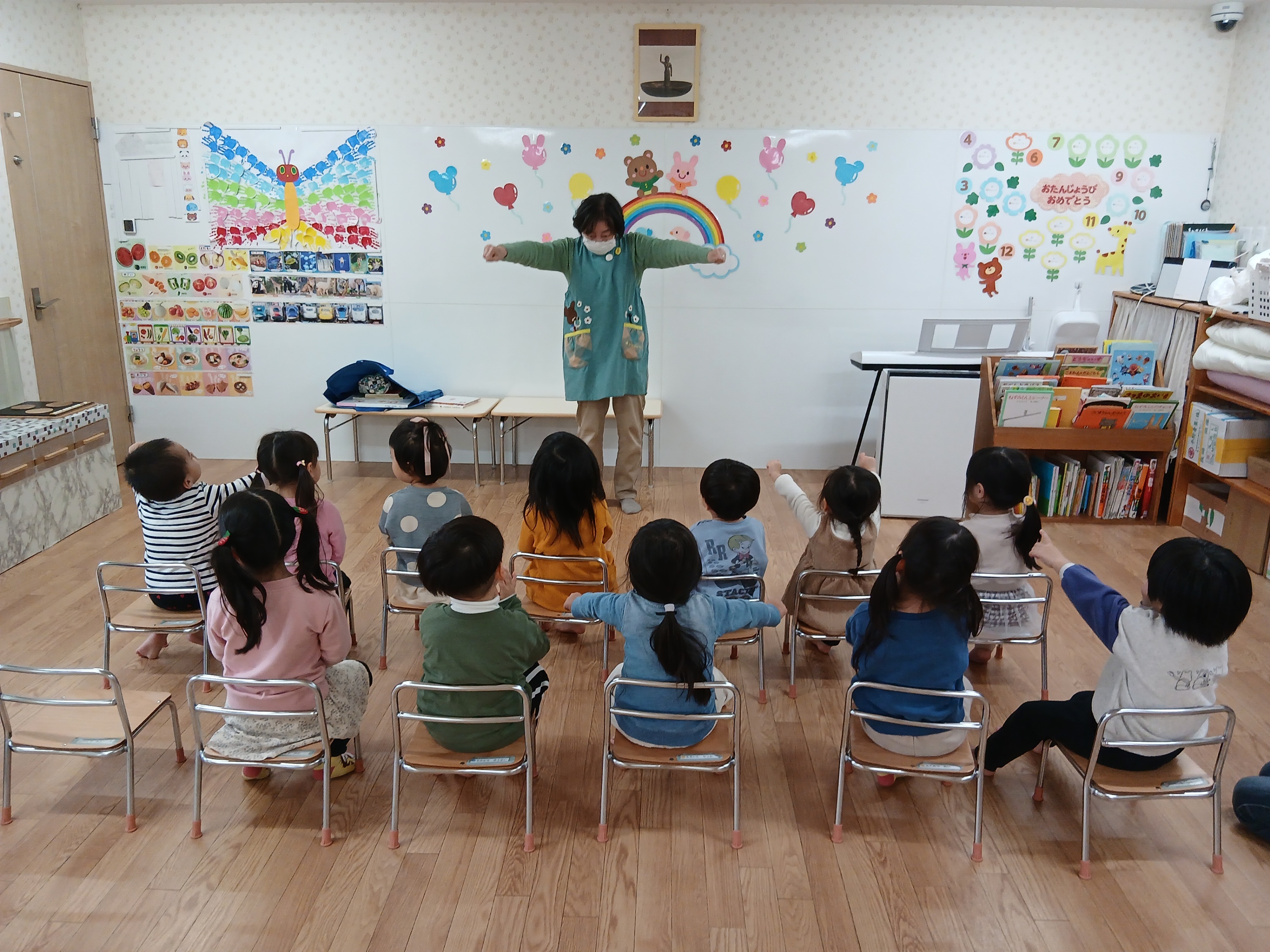 仲良くみんなで絵本を見たり
