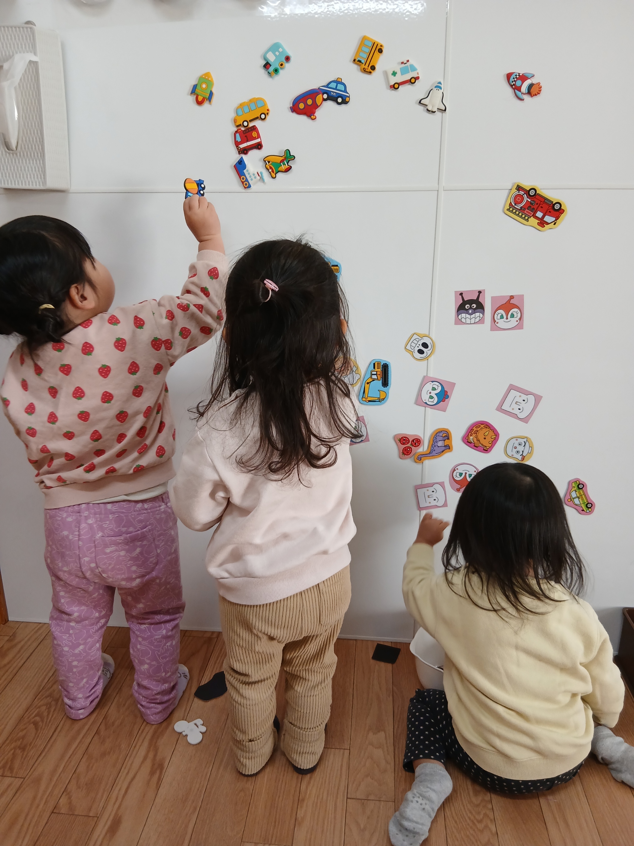 <壁にマグネットをペタペタ>