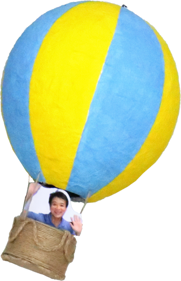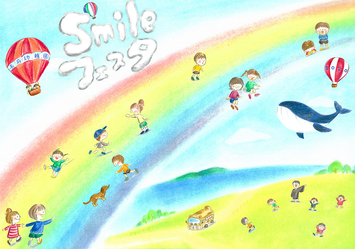 上空には、カラフルな気球やクジラに乗った子どもたちが、ポッカリと気持ちよさそうに浮かんでいます。