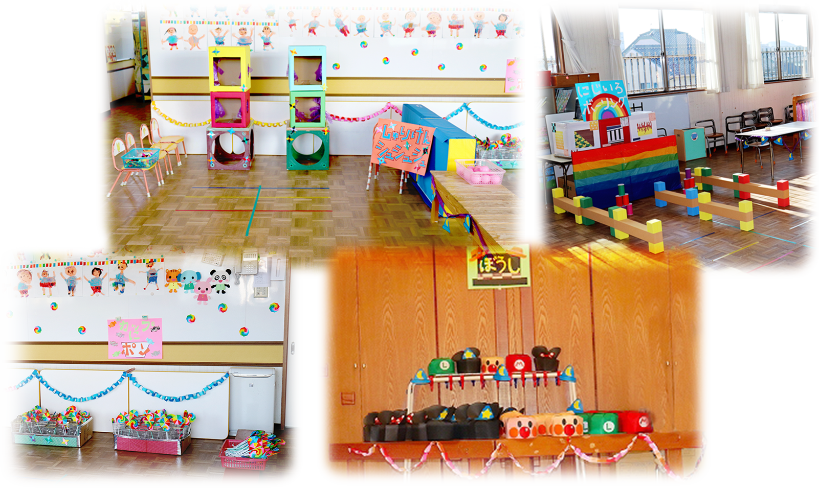 「虹色ボーリング」「しゅりけんシュシュシュ」「カップでポン」など、楽しいネーミングの子どもたちが喜びそうなゲーム、かわいいキャラクターの手作り帽子、魅力的な商品がいっぱいの「お店屋さん」 そして、お台所の先生が焼いて下さったとてもおいしい「スマイルビスケット」。