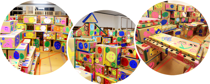 巨大な積み木をイメージして作った大量の段ボール箱、その数なんと260個!