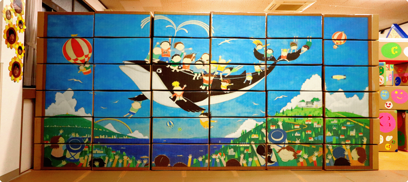年長組の園舎に飾られている絵をダンボールでパズルにしました。組み立てて遊ぼう!