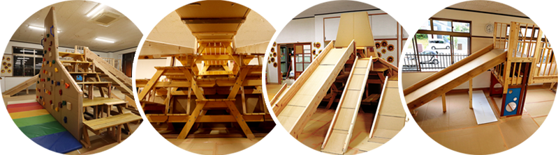 並べて、積んで、いろいろな形が出来上がり、登ったり、飛び降りたり、寝転がったり、遊び方は自由自在です。